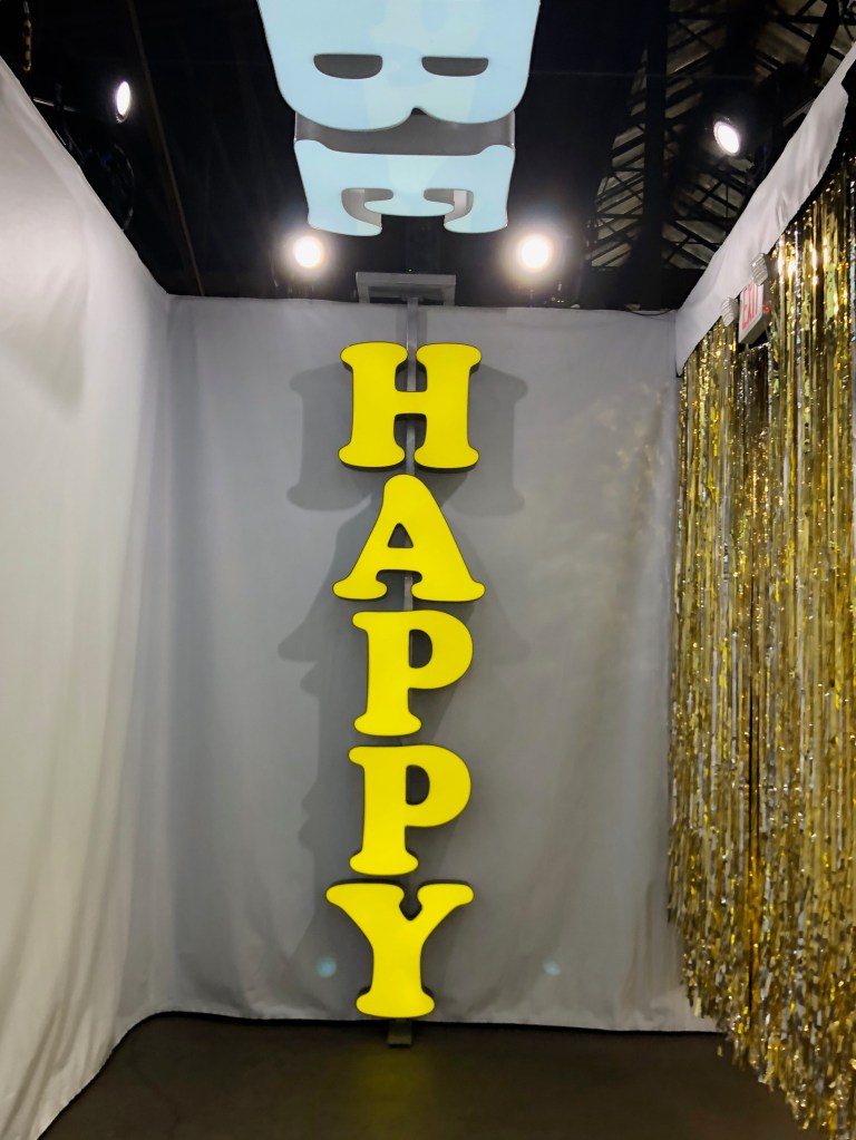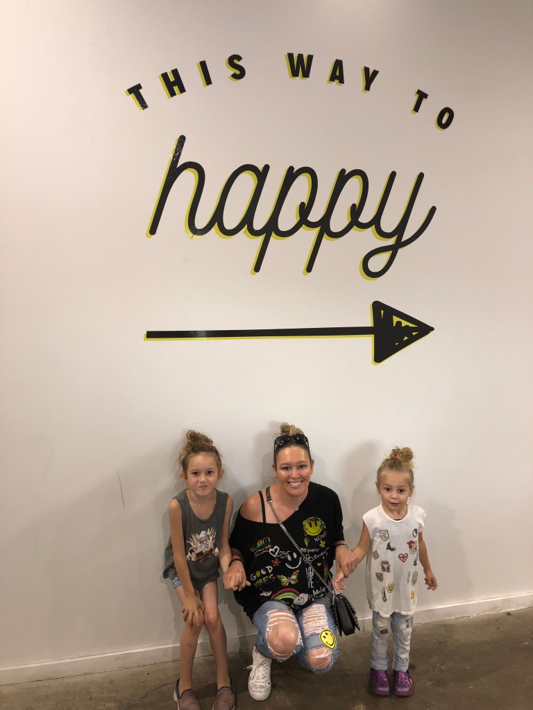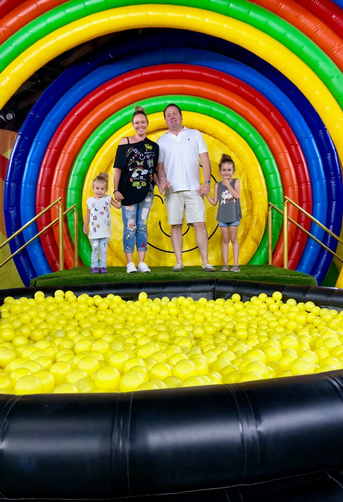 That Saturday morning, we caught an Uber to what appeared to be a warehouse district on the outskirts of downtown Chicago. There was a big inflatable outside (pictured above) and the kids were excited to get “happy.” We waited in a line for our time slot. They restrict how many people can go in at a time so all of their patrons can enjoy the experience. Then it was time to walk through those cute smiley face doors. Will the kids like it? Will we have fun? Was it worth the hype? Only time would tell.