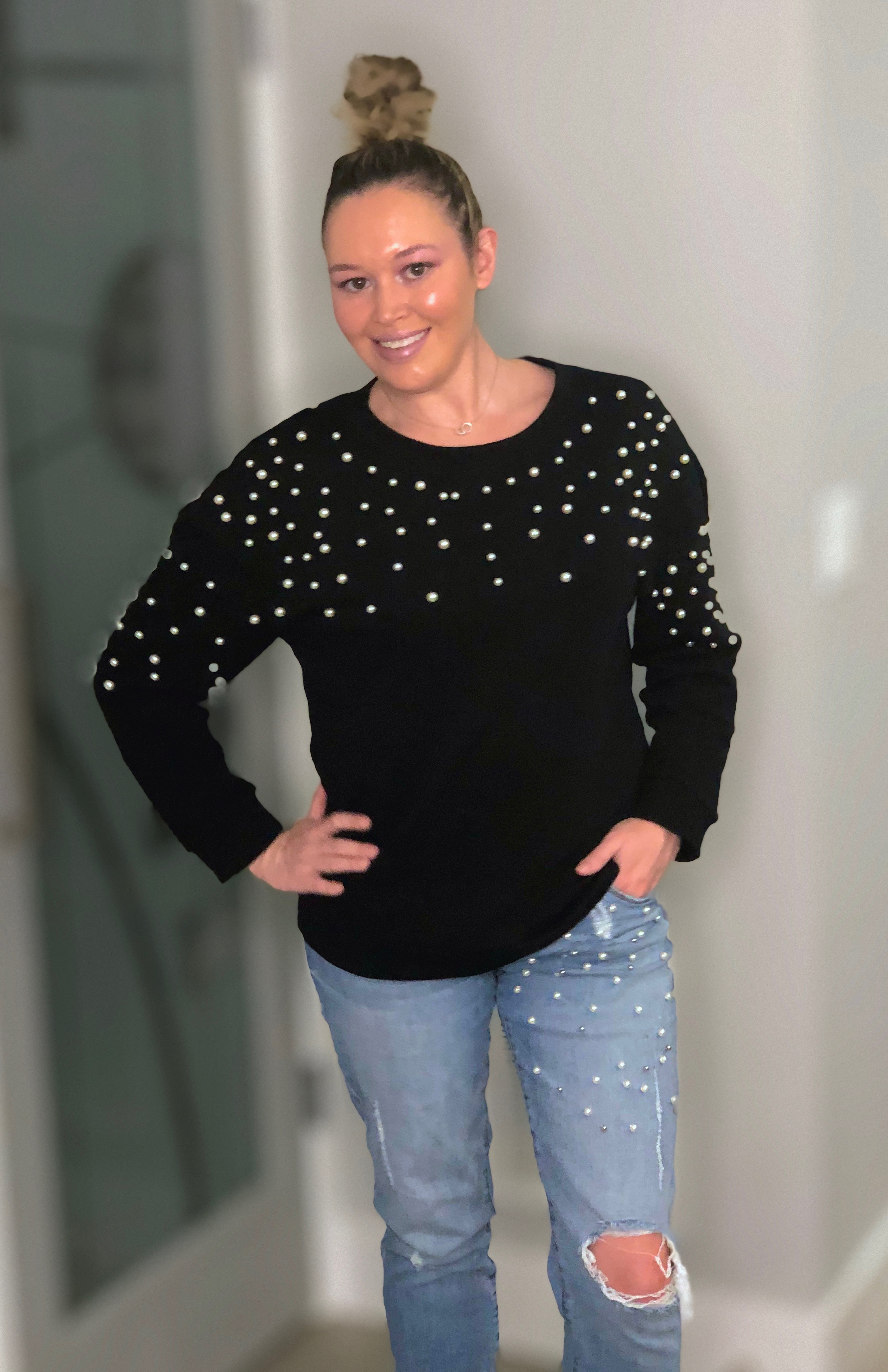 Let me just say that I was super excited when this Halogen sweatshirt arrived in time for me to kick off 2019! With the faux pearl detail on the black, it is so cute yet comfy and can be worn casually or dressed up a bit. Full disclosure, it does feel a little heavy when you put it on at first, but you don’t even notice after a few minutes.
